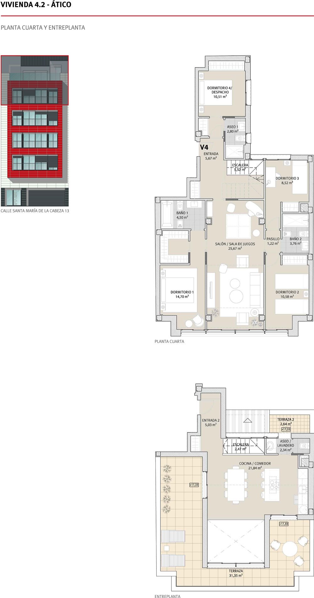 | V4.2 Ático+Trastero 4+Plaza de garaje | Cuarta y ático | Exterior/Interior | 4 | 152,09 | 182,92 | 227,13 | 511.000,00 € |  |
